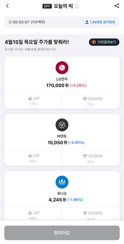 먼저 앱스토어 또는 구글스토어에서 리치톡을 검색하고 설치합니다. 당연히 로그인이 필요한데 회원가입은 애플아이디, 페이스북, 카카오톡을 통해 가입할 수 있으니 편한 채널로 회원가입을 진행합니다. 채널 연동된다고 해서 본인 개인정보가 노출되거나 그런 건 없습니다. 그다음 메인 화면 하단에 위치한 머니픽 탭으로 이동합니다. 머니픽 들어가자마자 오늘의 픽이라는 이벤트를 볼 수 있는데요, 오늘의 픽이 바로 주가 상승 예측하는 이벤트이자 리치톡의 첫 번째 돈 버는 방법입니다. 총 4개의 종목이 나오는데 각 종목마다 주가가 오를지 내릴지에 대한 업, 다운 버튼을 누르고 제출합니다. 장이 마감한 후 4개의 종목과 버튼이 생성되고 장 시작하기 직전까지 참여할 수 있습니다. 주식을 안하시는 분들이 있을수 있으니 시간으로 설명드리겠습니다. 오후 3시 35분에 오픈하면 다음날 아침 8시 59분까지 참여할 수 있습니다. 그리고 오늘의 픽 결과는 장이 마감되는 3시 35분에 종가가 확정되면 공개됩니다. 4개의 종가를 모두 맞추면 우승자로 채택되며 우승자 인원만큼 30만원이 나누어 지급됩니다. 4개의 종가를 모두 맞춘 인원이 한 명이면 한 명이 30만원을 갖게되고 우승자가 2명이면 한 명당 15만원씩 똑같이 나눠 갖게 됩니다. 이 상금은 현금이 아닌 리치캐시로 들어오며 리치캐시는 기프티콘으로 교환이 가능합니다. 근데 기프티콘 팔아서 현금화 시킬수 있는거 다들 아시죠? 그러니 결론은 그냥 예측만 하고 그 예측이 정답이 된다면 바로 돈이 들어온다고 생각하면 됩니다. 그리고 리치톡 돈 버는 두 번째 방법도 머니픽인데 이번엔 종목선택 후 목표주가와 수익률, 목표기간을 입력한 후 주가가 목표기간 안에 목표가격에 도달하는지 맞추는 것입니다. 예를 들어 삼성전자가 현재 80,000원인데 목표가격을 85,000원으로 설정하고 기간을 20일로 설정합니다. 그리고 20일 안에 삼성전자 주가가 한 번이라도 85,000원이 된다면 머니픽 성공이죠. 이 머니픽을 성공하면 예측 성공률과 누적 수익률이 올라가고 점수에 따라 레벨도 올라가게 됩니다. 이 머니픽은 머니픽 탭에 들어간 후 우측상단에 위치한 연필모양을 누르면 바로 참여할수 있습니다.